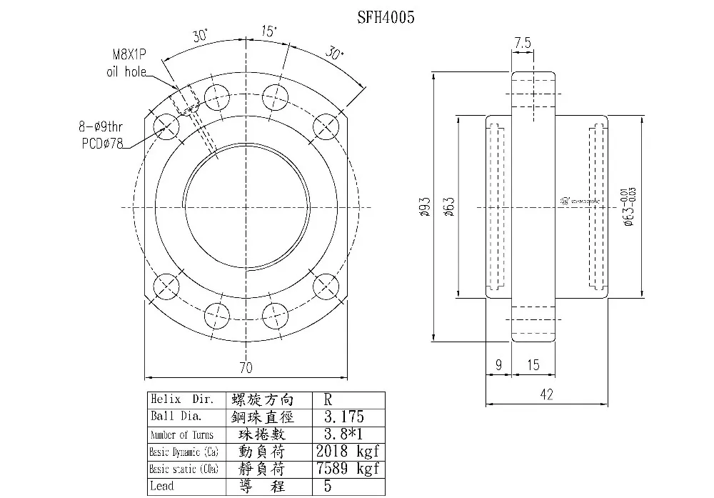 Product Name | 40mm Flange Nut Screw 4005 TBI Ball Screw SFH04005-3.8 |